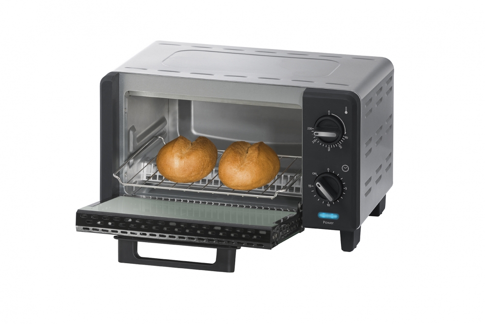 La puissance de 1000 watts de ce mini four d'appoint permet de cuire jusqu'à une température de 230°.