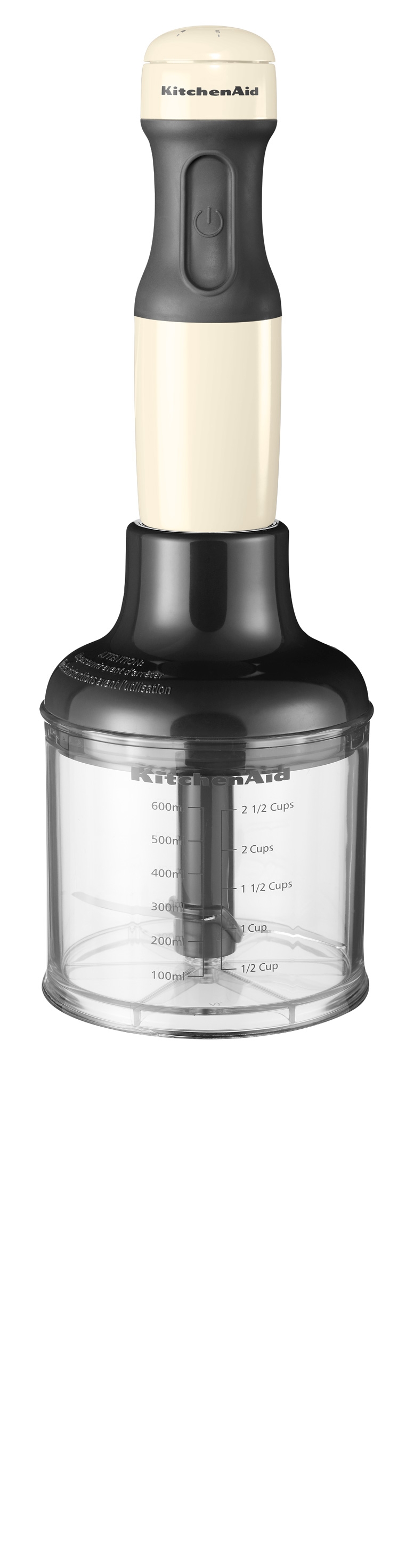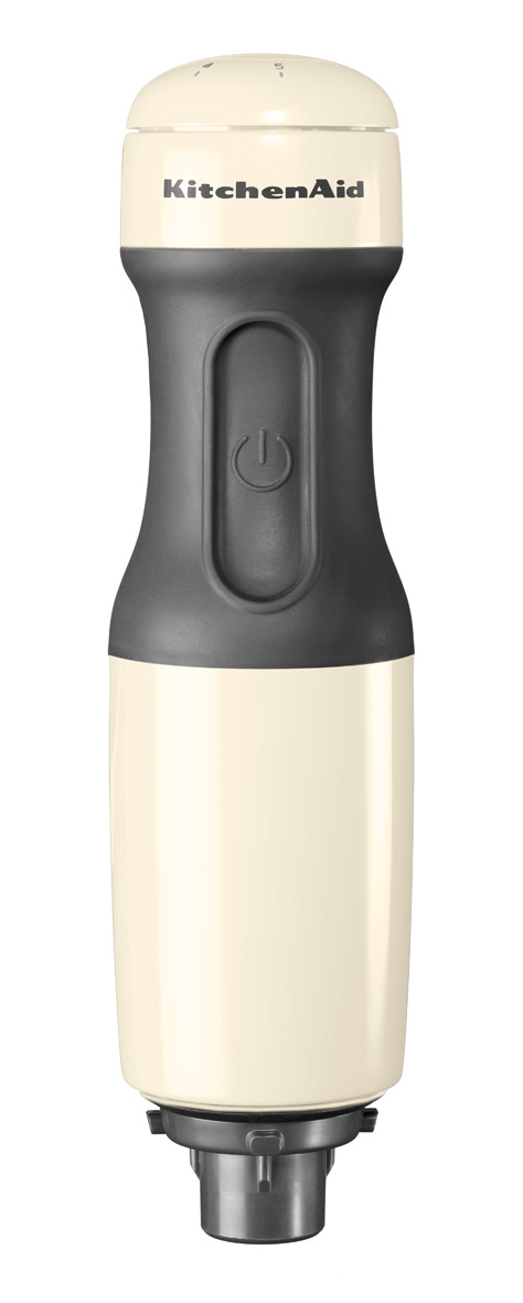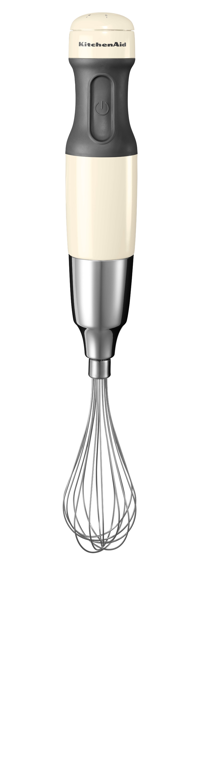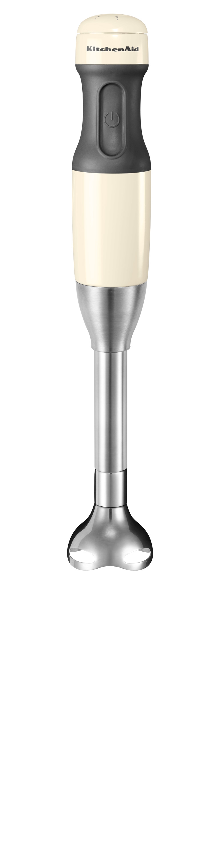 Mixeur plongeant KitchenAid, muni de trois embouts à lames interchangeables en acier inoxydable.