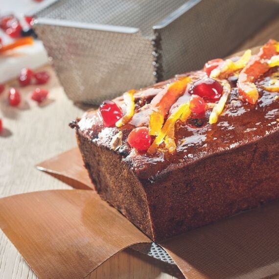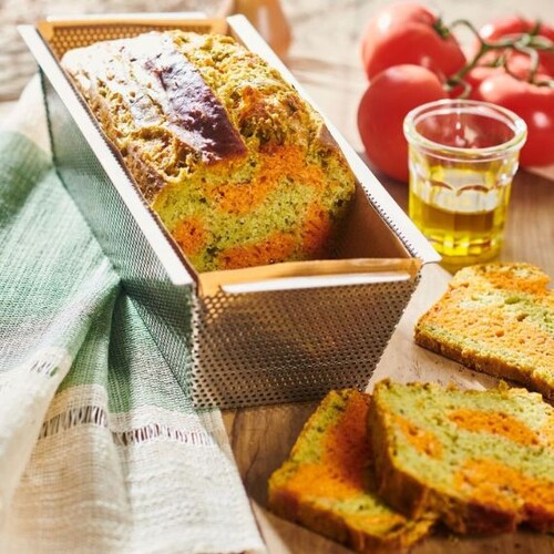 Moule à cake en inox perforé Air System® à fond démontable 26 x 8.6 x 7.5 cm ave