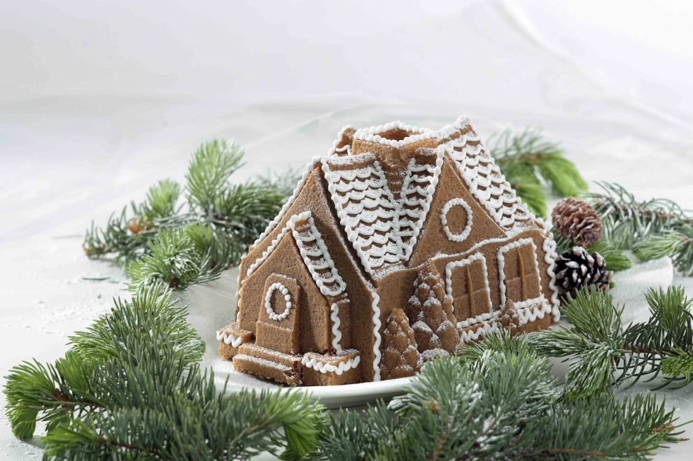 Moule à gâteaux en fonte d'aluminium argenté Maison de pain d'épices