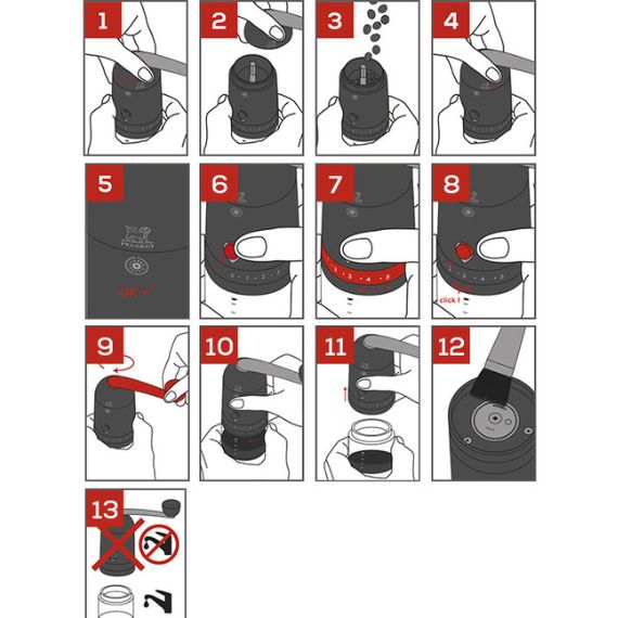 Avec ce moulin à café Peugeot, les amateurs de bon café peuvent réaliser la mouture parfaite, quelle que soit sa méthode d’extraction. D'un simple geste, vous pouvez sélectionner la mouture parfaite. Que ce soit pour l’espresso, le filtre, le piston, ou le cold brew, sélectionnez d’un simple geste la mouture.