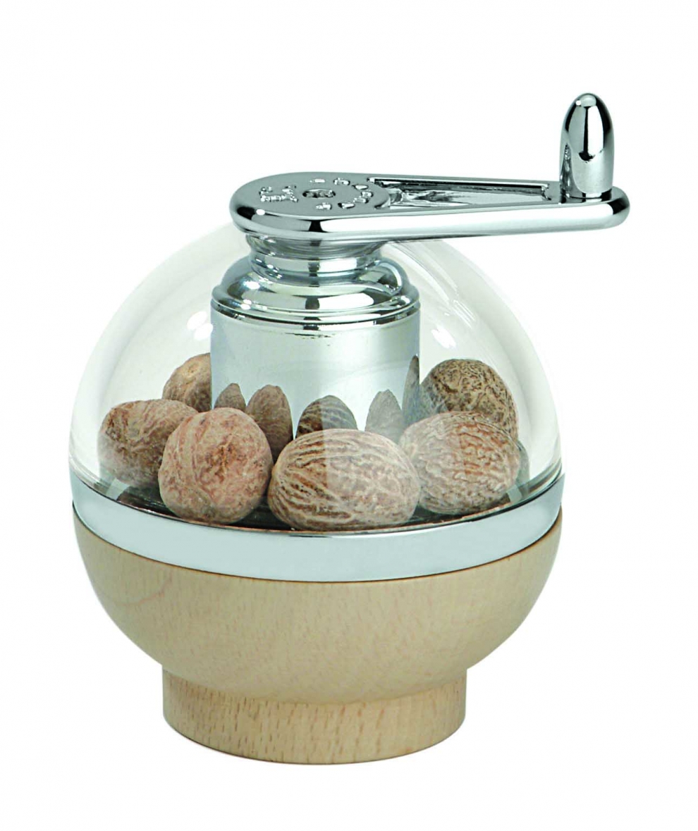 Il suffit de tourner la manivelle pour profiter de toutes les saveurs de la muscade, sans risque pour les doigts.