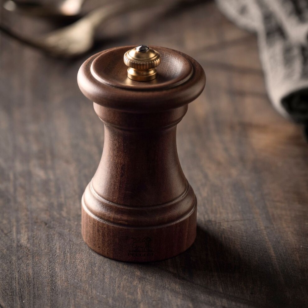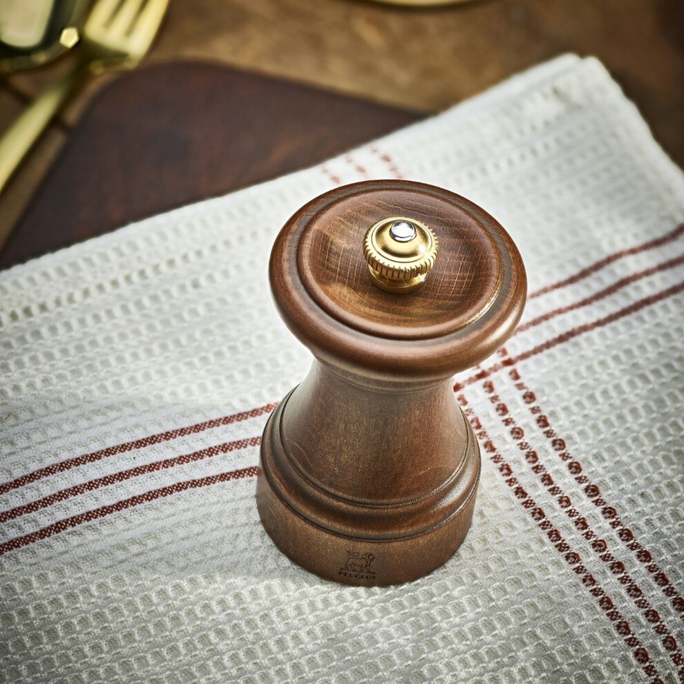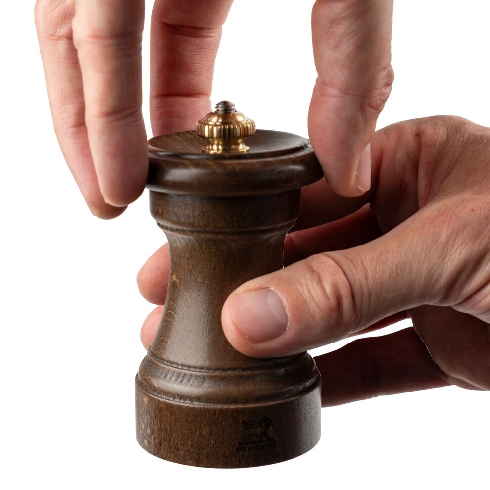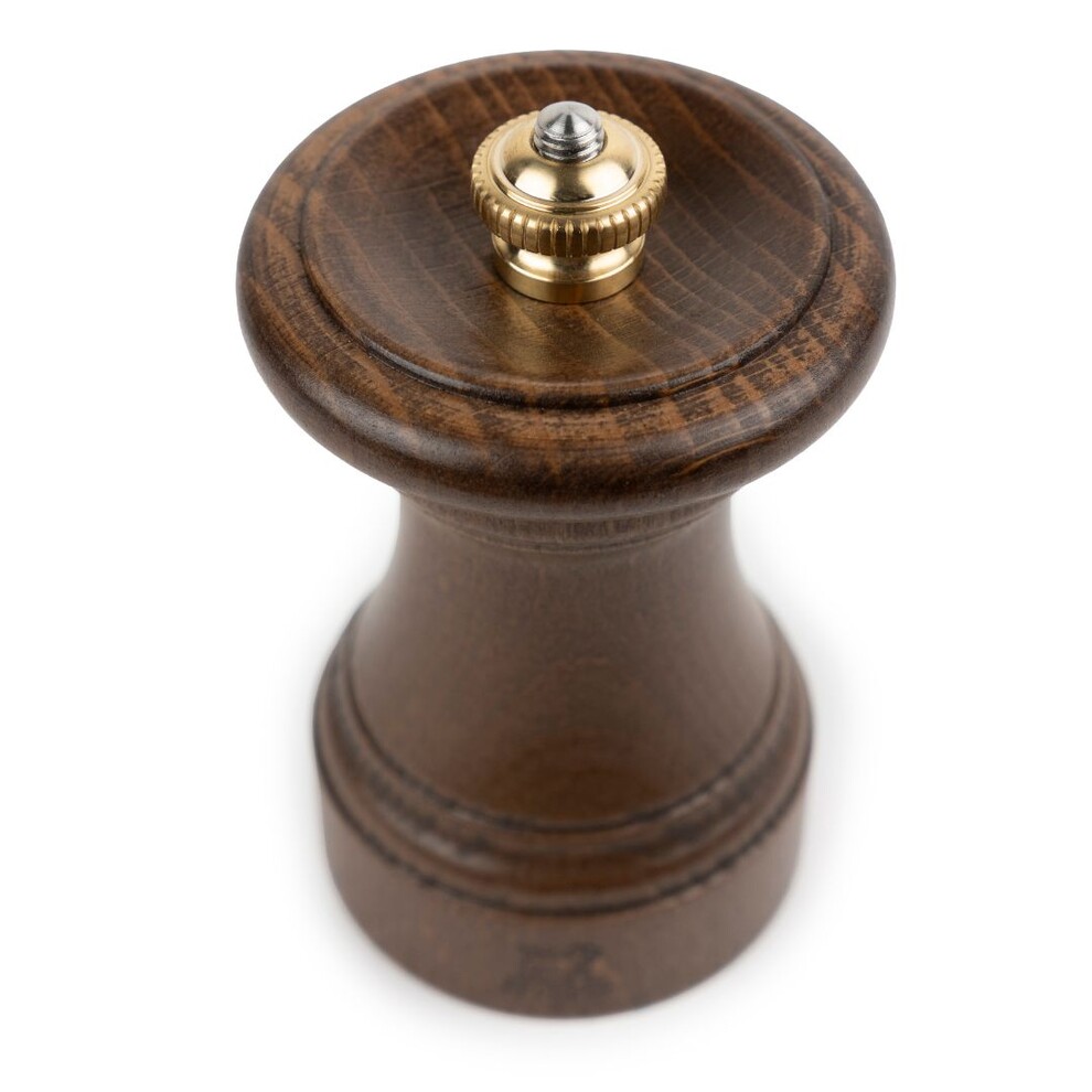 Fabriqué en hêtre avec une finition patinée, le moulin "1874" est présenté dans un élégant coffret. Il est soigneusement protégé par un sachet en feutrine, offrant protection et charme intemporel. Son bouton bijou, reproduit fidèlement à partir de l’original, apporte une touche d’élégance et souligne la silhouette courbée de son chapeau emblématique.