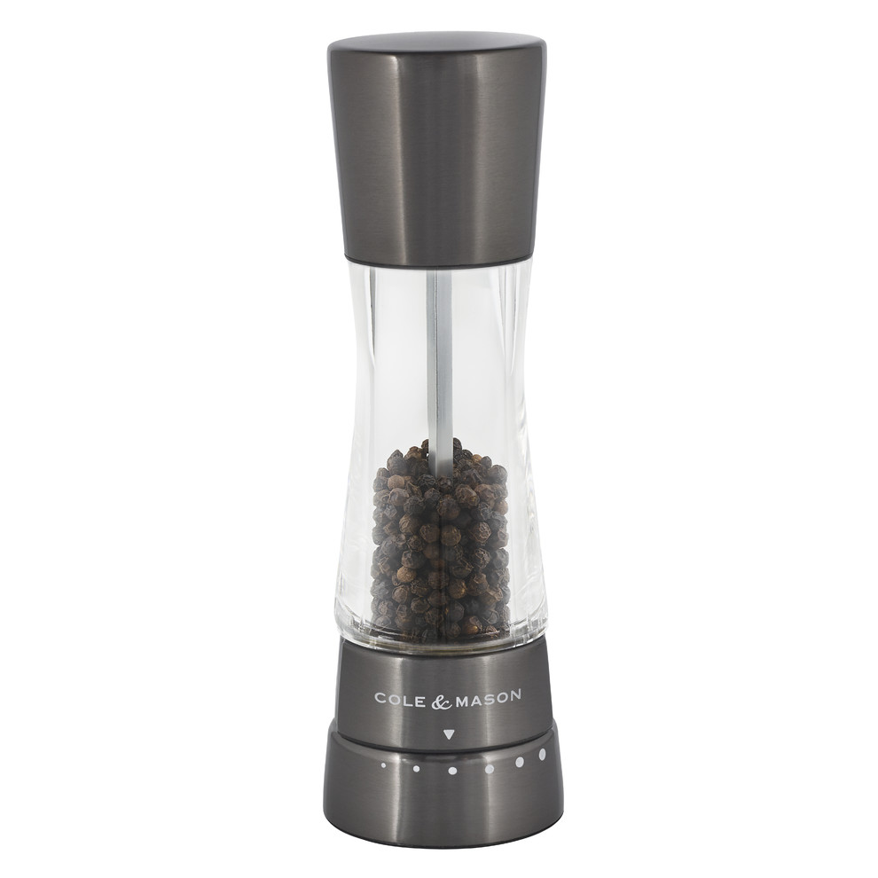Epuré, le moulin à poivre Derwent est fabriqué en acier inoxydable et acrylique et produit une mouture de qualité ainsi qu'un contrôle du dosage parfait pour la cuisine du quotidien. Grâce à ce moulin Gourmet Précision, faites simplement tourner l'anneau en acier inoxydable pour choisir par les 6 réglages de précision, de grossière à fine.