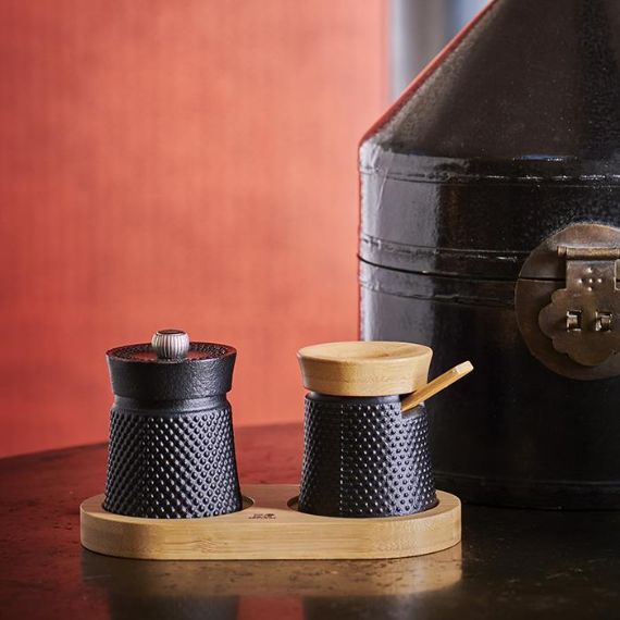 Le moulin à poivre Bali revisite la fonte, un matériau traditionnel, au toucher si particulier et se pare d’un magnifique coloris noir. Rempli de poivre du Sichuan, il vous offre un voyage visuel et gustatif dans l’empire du Milieu. Son mécanisme à poivre Peugeot est garanti sans limitation de durée.