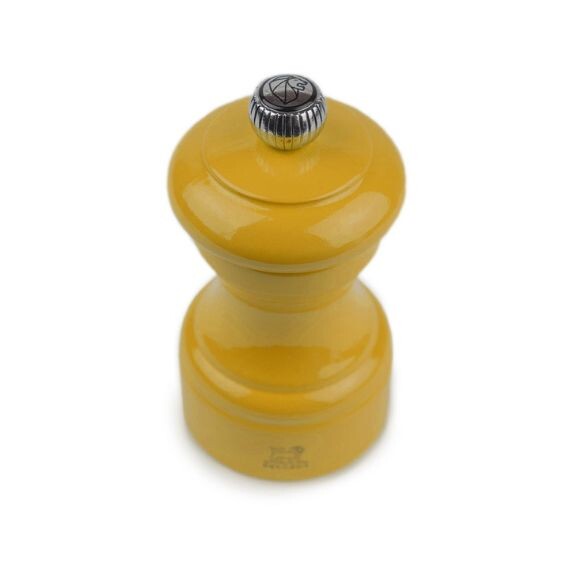 Accueil > Ustensiles de cuisine > Moulin > Moulin à poivre manuel en bois laqué, jaune safran, 10 cm - 4in