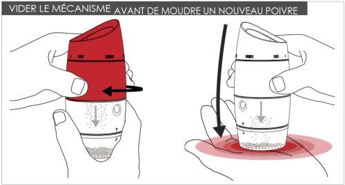 Varier les épices devient simplissime : il vous suffit de fixer le réservoir de poivre de votre choix à l’extrémité de votre moulin Zanzibar en maintenant les deux boutons verrouillage/déverrouillage appuyés. Ainsi vous pouvez changer de poivre à l’envie !