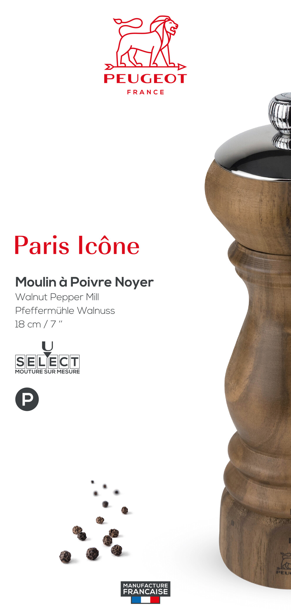 Moulin à poivre Paris Icone Noyer 18 cm