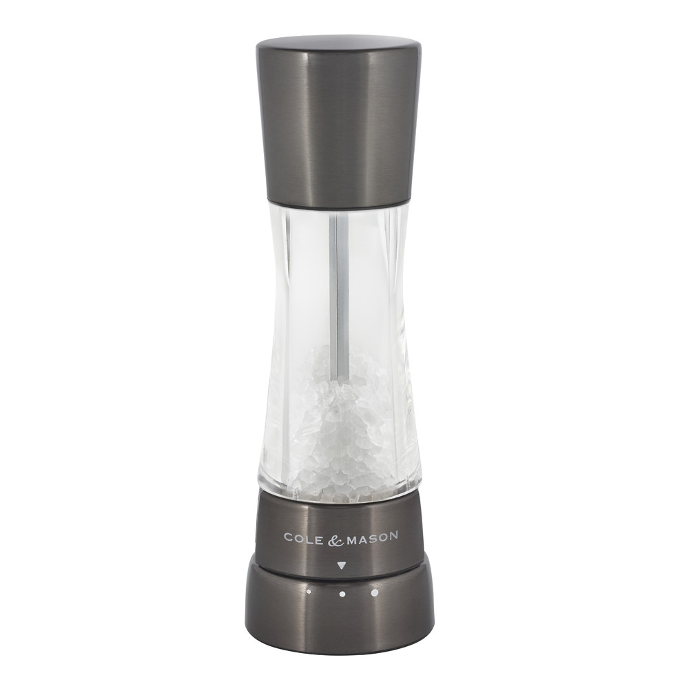 Epuré, le moulin à sel Derwent est fabriqué en acier inoxydable et acrylique et produit une mouture de qualité ainsi qu'un contrôle du dosage parfait pour la cuisine du quotidien. Grâce à ce moulin Gourmet Précision, faites simplement tourner l'anneau en acier inoxydable pour choisir par les 3 réglages de précision, de grossière à fine.