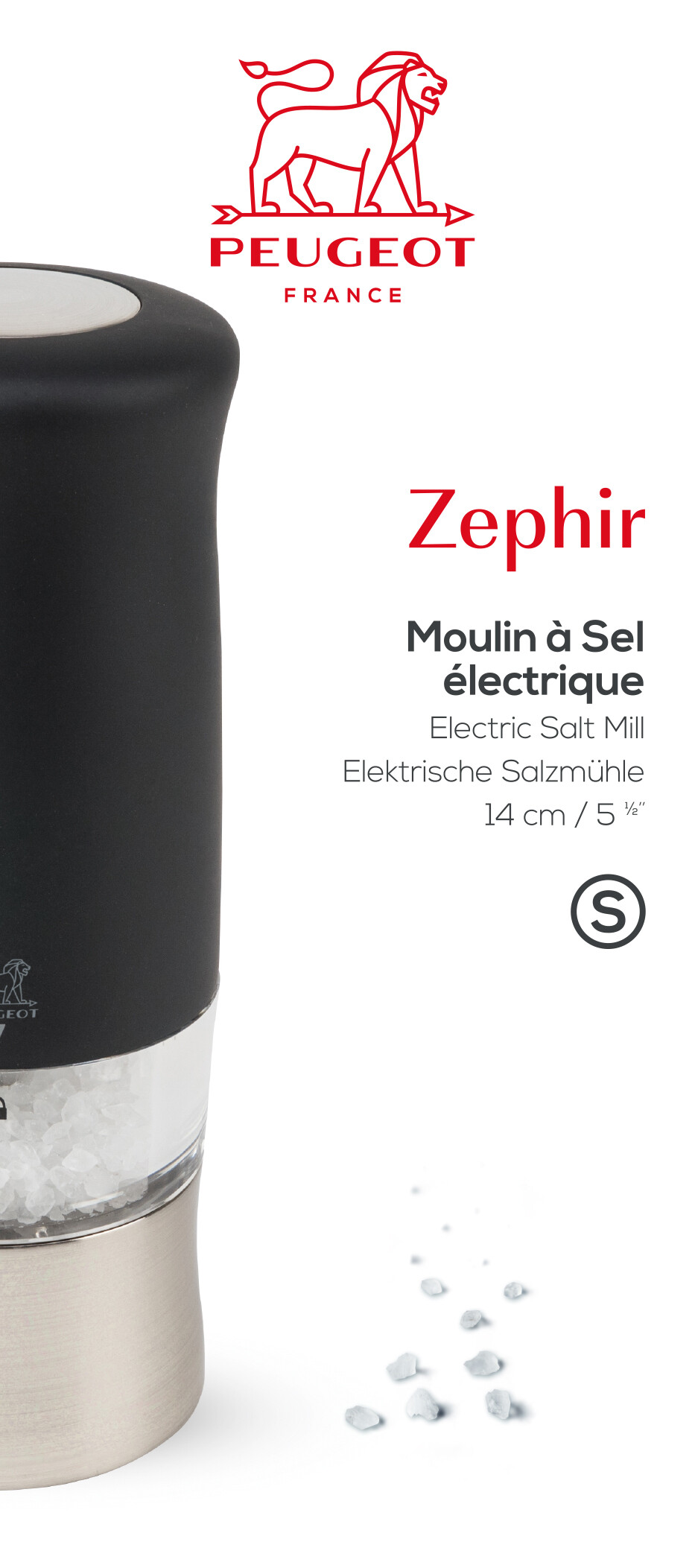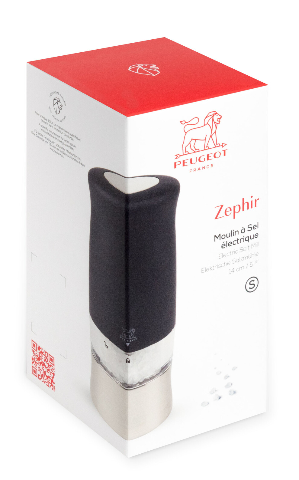 Le moulin à sel électrique Zephir noir de Peugeot est un petit moulin d'utilisation facile et agréable : il trouvera spontanément sa place sur la table ou sur le plan de travail de votre cuisine.