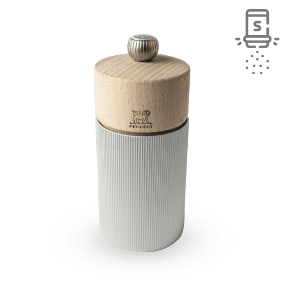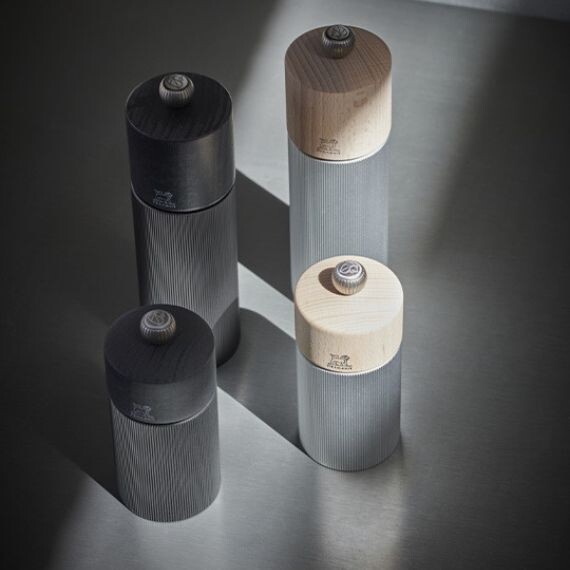Ce moulin à poivre de la collection Line Carbone se distingue par son design particulier et très contemporain. En effet, le corps est composé d'aluminium strié, qui lui confère une apparence hors du commun. La teinte s'accorde parfaitement au coloris graphite  métallisé de son chapeau en bois.  Outre le design, les moulins de la collection Line sont très performants et résistants. Le mécanisme spécial en acier sel sec est garanti à vie, sans limitation de durée. Fabriquée en France, la collection de moulin reflète le savoir-faire Peugeot. Le petit bouton offre la possibilité de régler la taille du grain.
