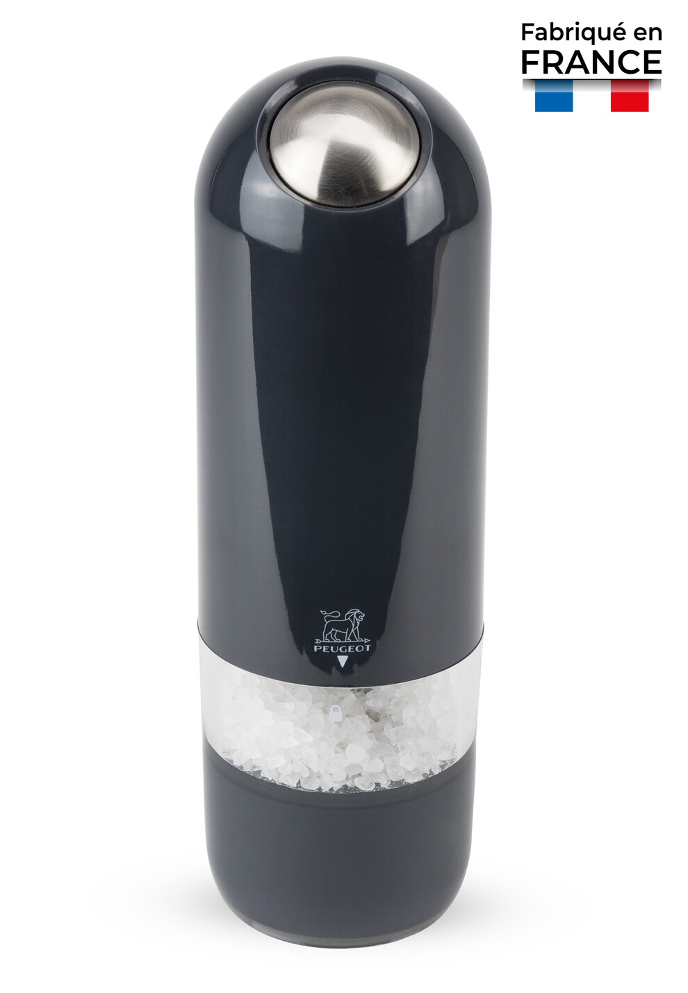 Avec sa forme arrondie et son habillage gris brillant, le moulin à sel électrique Alaska Quartz de Peugeot conjugue design contemporain et confort d’utilisation.