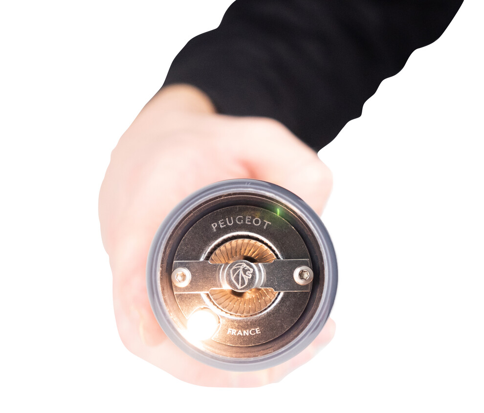 Une lampe intégrée à la base du moulin vous aide à voir et à contrôler la quantité de sel que vous souhaitez utiliser.