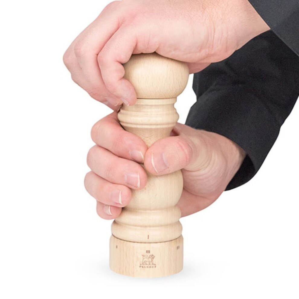 Modèle emblématique de Peugeot, le moulin à sel manuel Paris U’Select 18 cm en bois de hêtre naturel allie simplicité et technicité.