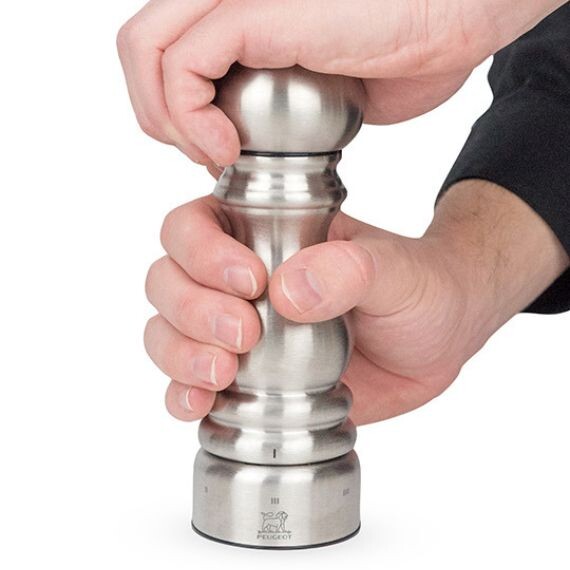 Le moulin Paris Chef Inox est équipé du système U’Select breveté par Peugeot qui permet de sélectionner six degrés différents de mouture. Du grain concassé au sel le plus finement moulu, vous gardez la main pour adapter la finesse du grain aux recettes que vous souhaitez exécuter.