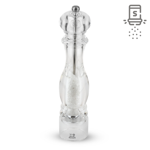Le moulin à sel manuel Nancy de Peugeot embellit vos tables et plans de travail avec ses lignes élégantes tout en transparence.