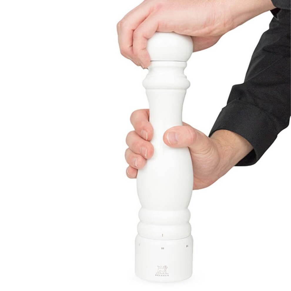 Modèle emblématique de Peugeot, le moulin à sel manuel Paris U’Select allie simplicité et technicité. Son revêtement laqué blanc lui donne une touche design résolument contemporaine.