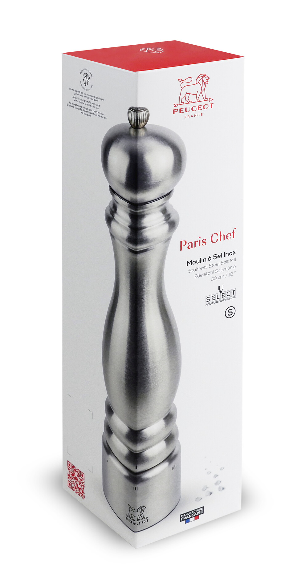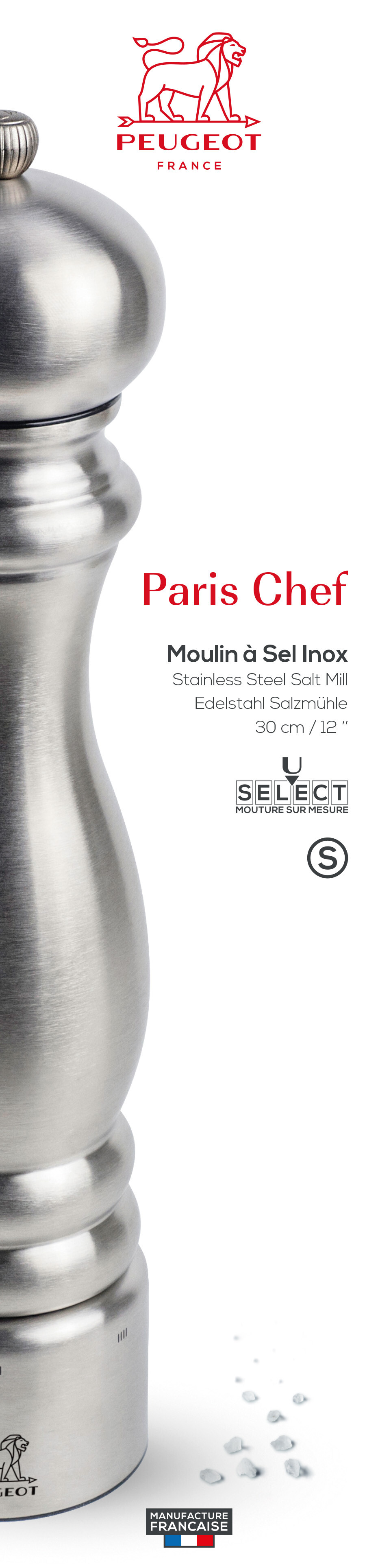 Tous les mécanismes Peugeot sont garantis à vie et offrent une grande robustesse. Le moulin à sel Paris Chef U’Select est garanti 5 ans.