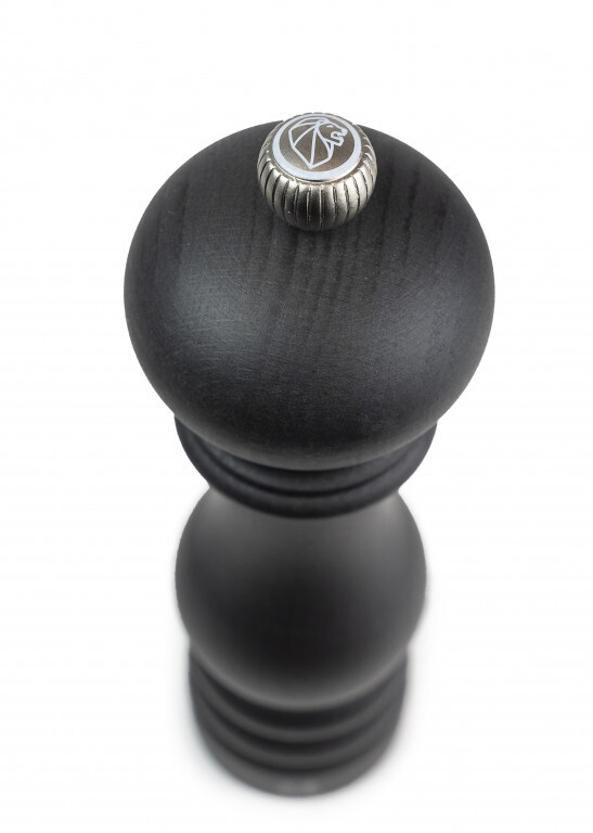 Ce moulin à sel Paris de Peugeot, archétype du moulin à sel, se distingue par sa silhouette galbée, devenue une référence incontournable en gastronomie. Il se pare ici d'une élégante finition gris anthracite légèrement métallisante, sublimant les veines naturelles du bois pour un rendu graphique unique.