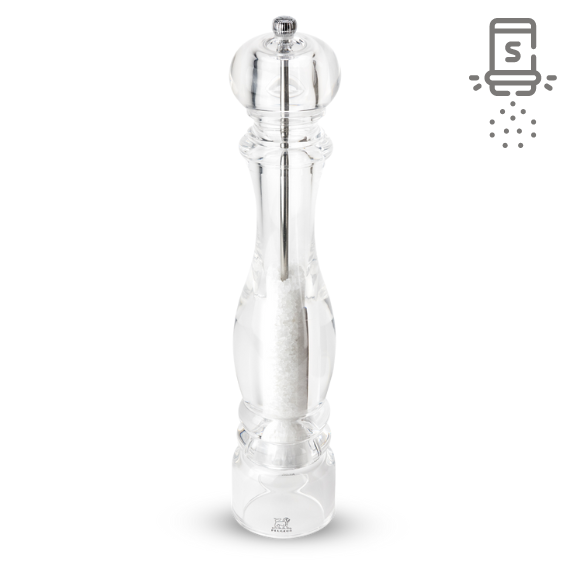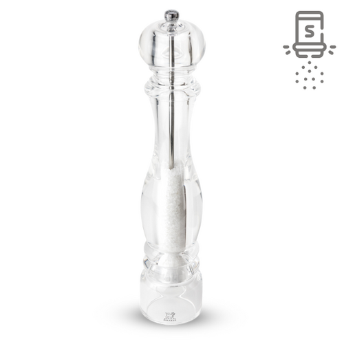 Le moulin à sel manuel Nancy de Peugeot embellit vos tables et plans de travail avec ses lignes élégantes tout en transparence.