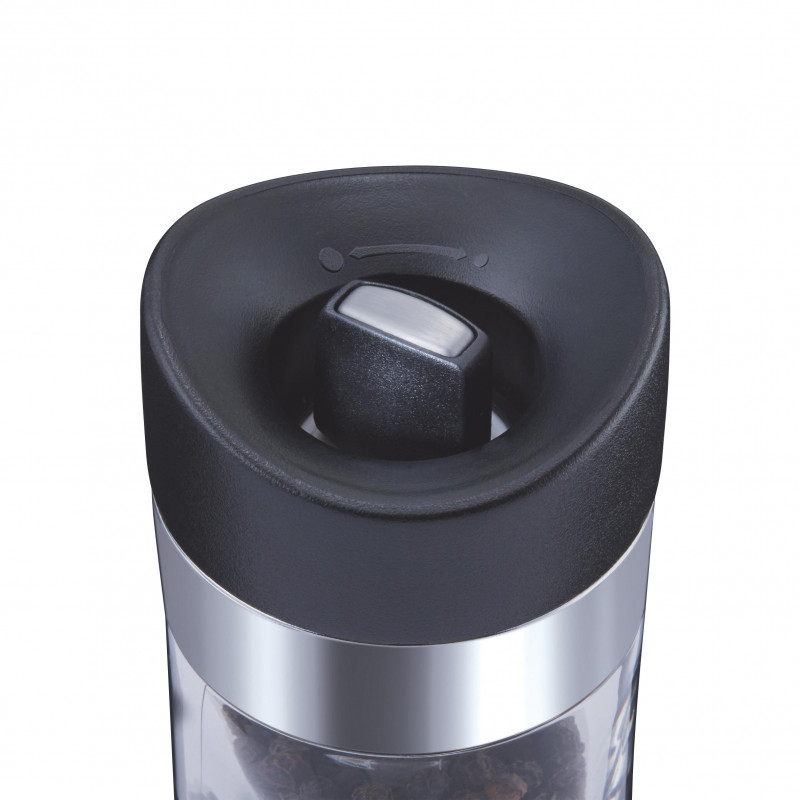 Un simple mouvement du poignet et voilà vos plats, sauces, salades assaisonnés ! Réglez la mouture comme vous le souhaitez grâce au bouton de réglage, de très fin à grossier. Et n'ayez pas peur d'en faire trop ou pas assez : la partie du corps transparent ainsi que le système d'éclairage vous permettent de contrôler la quantité restante.