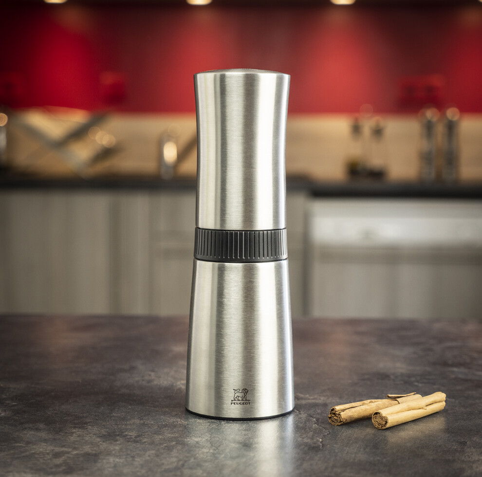 Innovation surprenante,le mécanisme de ce moulin est étudié par Peugeot permet de moudre finement vos bâtons de cannelle.