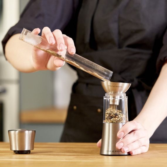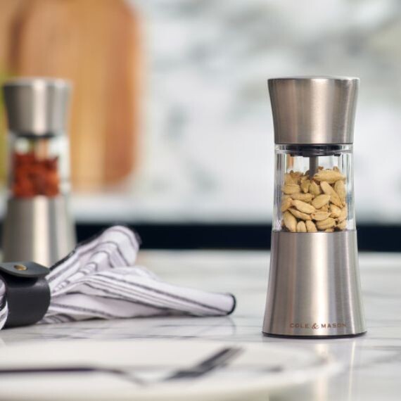 Le moulin à épices Stadhampton de Cole & Mason est l'outil incontournable pour révéler toute la richesse des arômes et bénéficier des bienfaits de vos épices préférées fraîchement moulues. Son double mécanisme redoutable combine l'efficacité de trois lames rotatives en acier inoxydable pour préparer et couper les épices les plus volumineuses et les plus dures en petits morceaux, avant de les envoyer dans son large mécanisme polyvalent en céramique pour les moudre plus ou moins finement.
