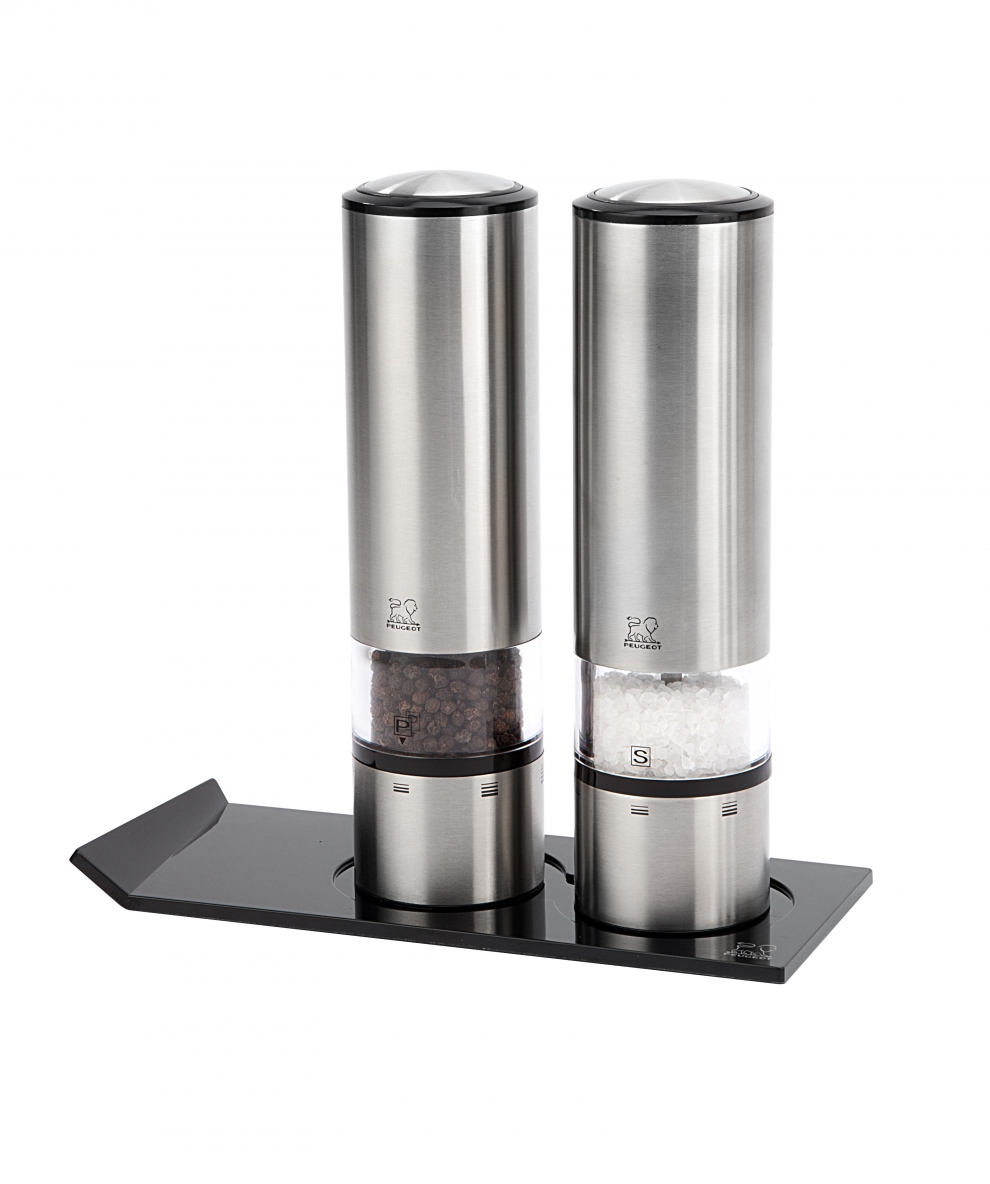 Offrez-vous un duo de prestige : le duo de moulins électriques Peugeot Elis Sense se compose d'un moulin à poivre en inox brossé et de son moulin à sel coordonné. Ce sont les premiers moulins électriques Peugeot à bénéficier de la technologie tactile.