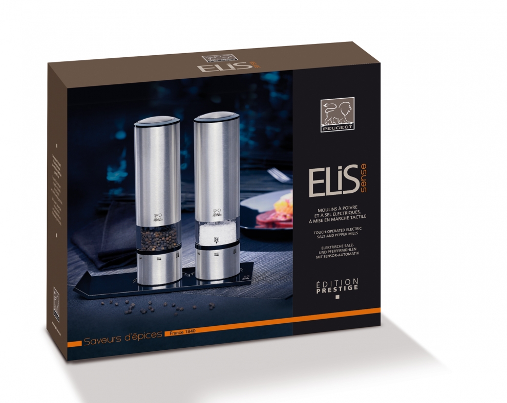 Livré dans un élégant coffret de présentation, le duo de moulins Elis Sense de Peugeot sera un cadeau idéal pour un cuisinier averti ou un amoureux des objets au design moderne.