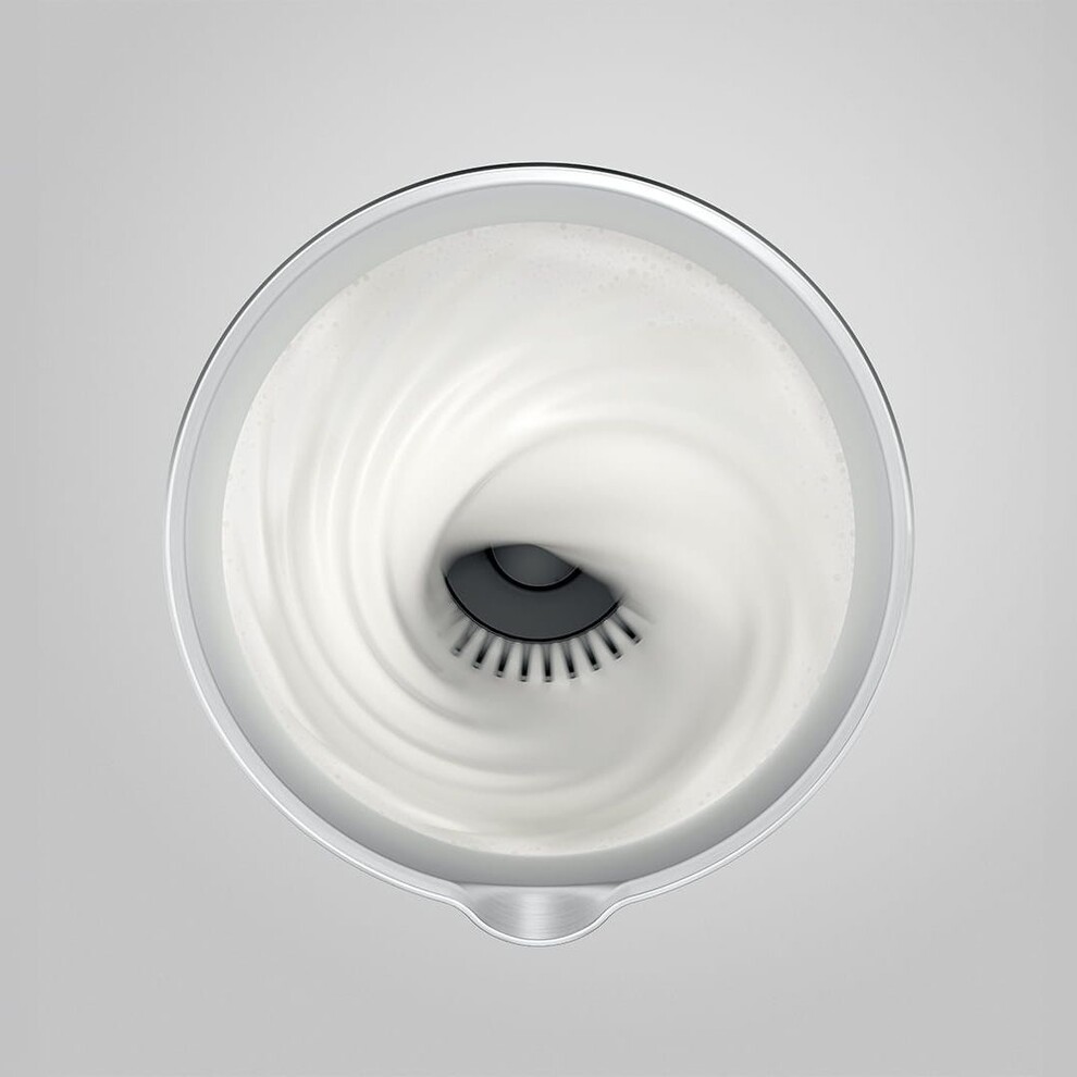 Grâce à sa technologie moderne, l'émulsionneur Hot & Cold produit une mousse homogène et chauffe le lait de manière uniforme. Son mode veille et son extinction automatique en font un allié économe en énergie.