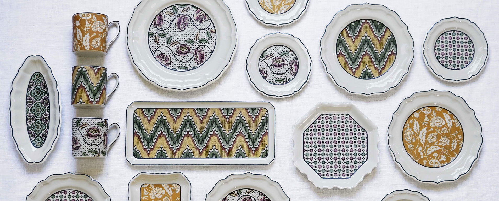 Des motifs colorés pour réhausser votre tableLa Faïencerie de Gien a choisi, pour cette première collaboration avec Antoinette Poisson, de travailler cinq motifs différents. Ces dessins exclusifs pour Gien, mixés avec des archives du XVIIIème, habillent les pièces aux formes issues du riche patrimoine de la Faïencerie.