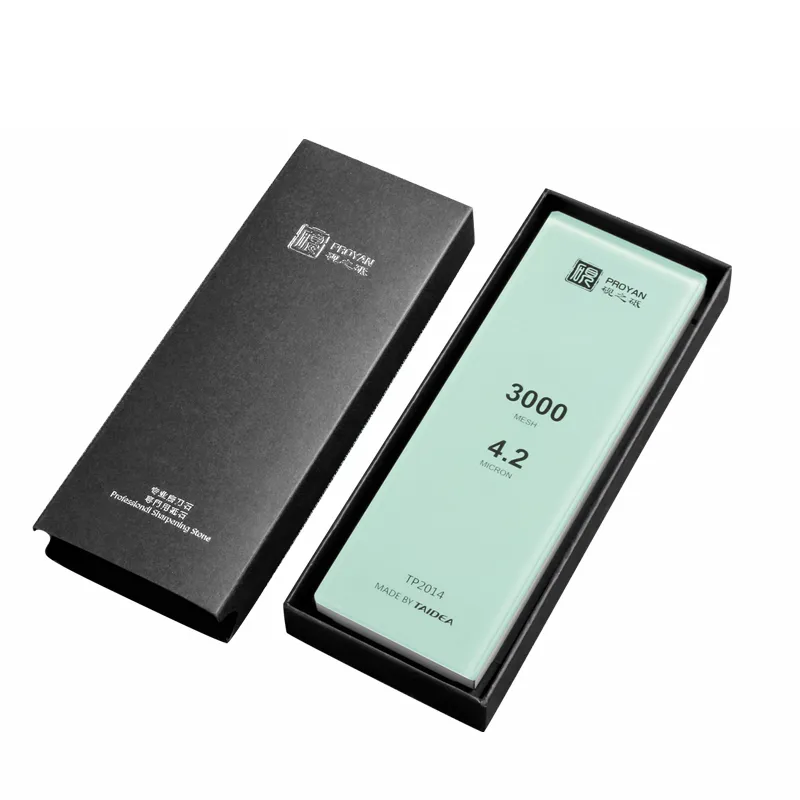 Les pierres PRO-YAN en corindon bénéficient d’un nouveau procédé de fabrication éco-responsable de consolidation à température ambiante. Le corindon, est plus fin et plus doux que les pierres en céramique traditionnelles, le liant de qualité, de fait le couteau glisse mieux sur la surface. La concentration en abrasif est plus élevée, l’affûtage se fait plus rapidement.