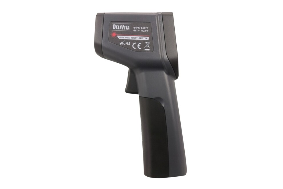 Le pistolet thermomètre infrarouge numérique de DeliVita est l'accessoire idéal pour mesurer la température de votre four à pizza DeliVita. Parce qu''il est important de s'assurer que votre four est toujours à la bonne température, le pistolet thermomètre infrarouge numérique de DeliVita est capable de mesurer des températures allant de -50°Cà environ 420°C (soit l'équivalent de -58°F~788°F).