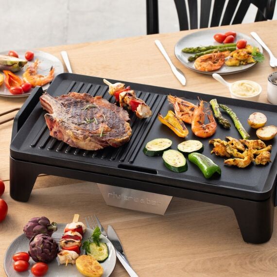 La plancha cook&serve bi-zone de Riviera & Bar vous offre une cuisine saine et délicieuse grâce à son revêtement antiadhésif sans PFOA. Réalisez ainsi toutes vos recettes sans ajout de matière grasse. La plaque de cuisson est légèrement inclinée pour évacuer facilement graisses et jus de cuisson.