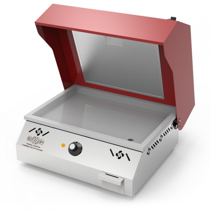 Plancha inox Baigura d'intérieur électrique 50 cm avec hotte aspirante couvercle