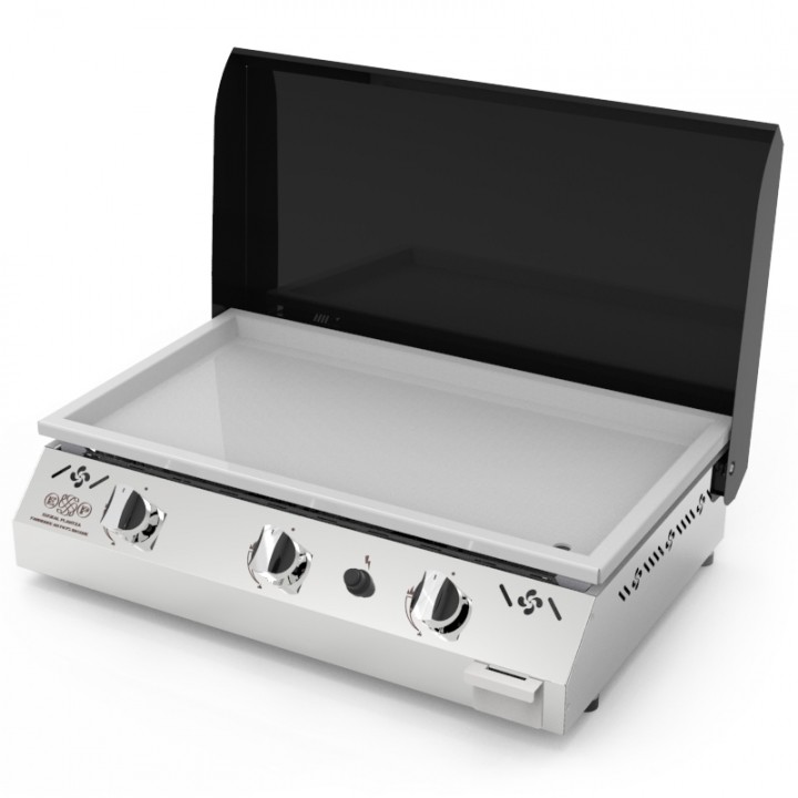 Plancha inox Iparla 80 cm 3 feux gaz couvercle rouge MANZANA