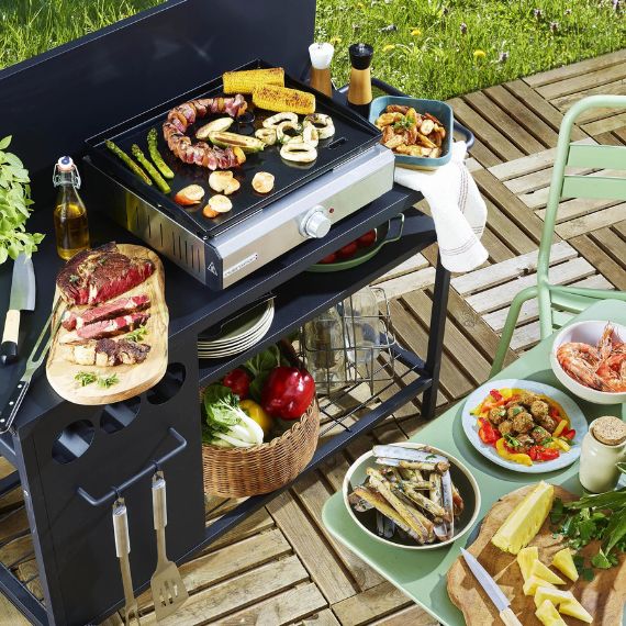 Avec une grande surface de cuisson de 1575 cm² (45 x 35 cm), la Plancha Pro peut réunir jusqu'à 10 convives. Sa température réglable de 50°C à 300°C offre une polyvalence exceptionnelle pour la cuisson de fruits, légumes, fruits de mer, viandes, poissons, œufs, fromages, pâtes spécifiques, et bien plus. Certifiée IPX4, offrant une protection totale contre les projections d'eau et les intempéries, elle est idéale pour une utilisation en extérieur.