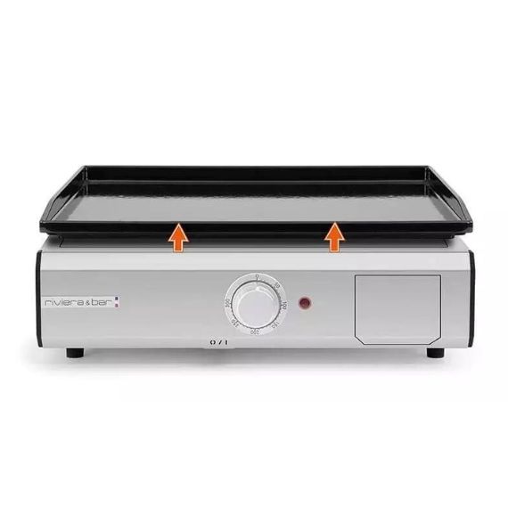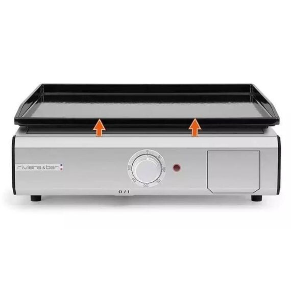 La plaque émaillée à l'aspect lisse se nettoie facilement après chaque utilisation. Amovible, elle se passe sous l'eau tiède et savonneuse pour éliminer tous les résidus d'aliments. Le collecteur de graisses amovible se nettoie après complet refroidissement de l'appareil. Avec un châssis en inox brossé, un interrupteur et voyant "Marche/Arrêt" pour zéro consommation d'électricité en position "Arrêt", et un cordon d'alimentation d'1 mètre, la Plancha Pro Fonte Émaillée 1 Zone de Riviera&Bar allie performance, durabilité et praticité, offrant une expérience culinaire exceptionnelle à la française.