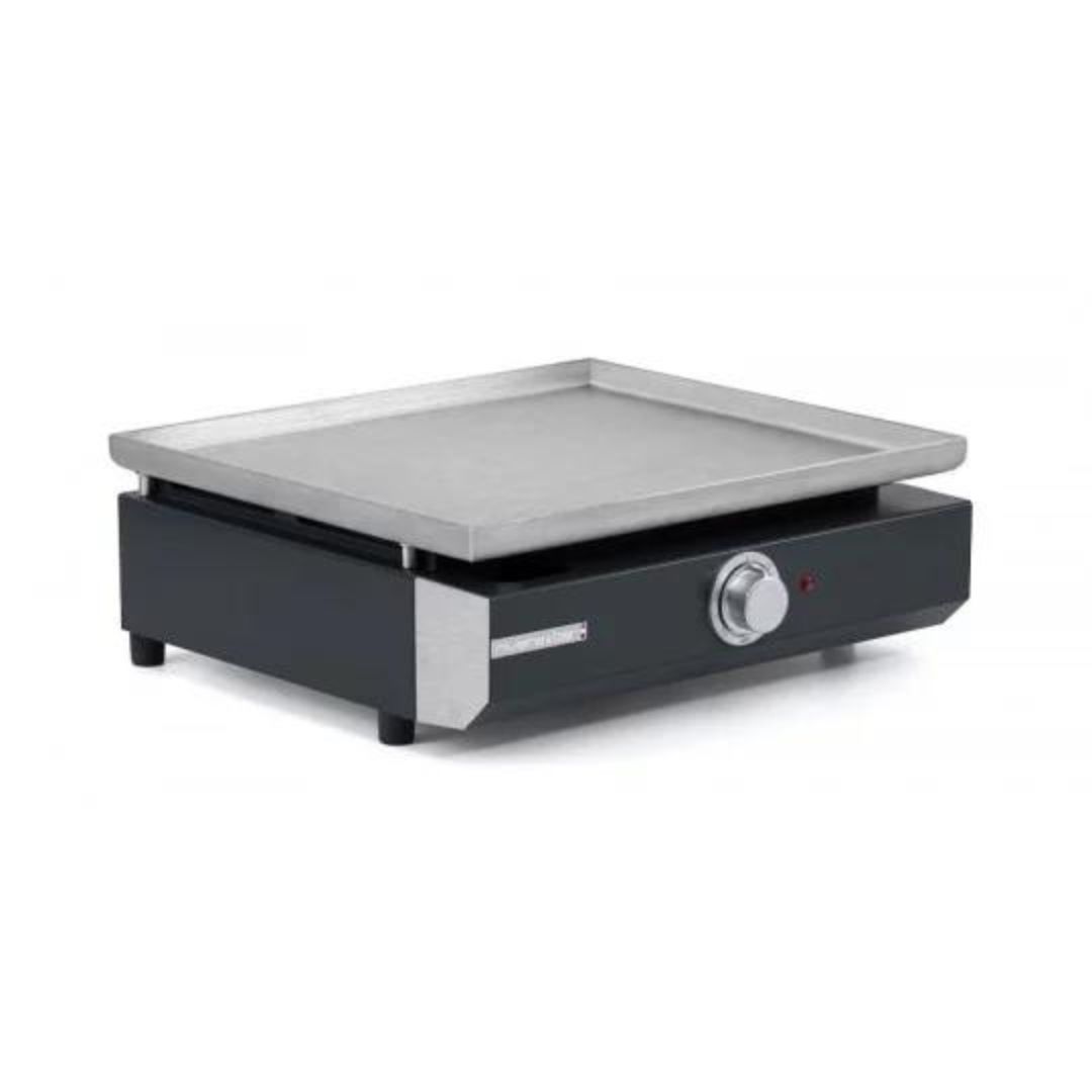 La grande surface de cuisson de 1800 cm2 dont elle dispose permet une grande flexibilité. La température de la zone de cuisson est réglable de 50 à 300°C. La plancha dispode aussi d'une zone de maintien au chaud, très pratique pour les cuissons multiples. Sa montée en température est très rapide et l’essentiel du jus reste contenu dans les aliments pour plus de saveurs.