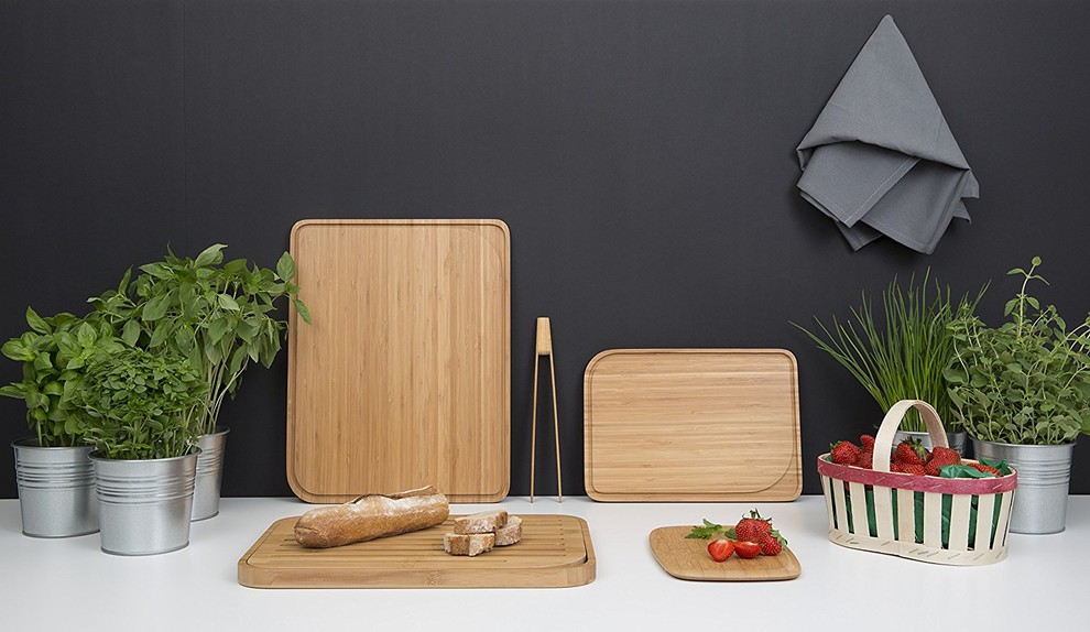 Cette planche à découper Plebby est à la fois design et pratique: fine avec des bords arrondis pour plus d'ergonomie, de grande taille pour pouvoir y couper tous types d'aliments et avec une rigole pour récupérer le jus de vos viandes et fruits.