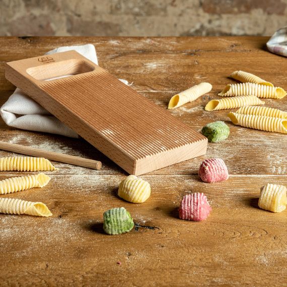 Qui n'a pas rêvé de confectionner facilement des pâtes fraîches maison comme en Italie ? Les gnocchi sont un type de pâte très typique en italie ! Pour les réaliser, la planche à gnocchi vous permettra de réaliser des pâtes esthétiques, délicieuses et gourmandes ! La planche est et la tige sont réalisées en bois massif. Avec sa poignée ergonomique et ses dents solides, il suffira d'une légère pression pour strier tout type de pâtes.