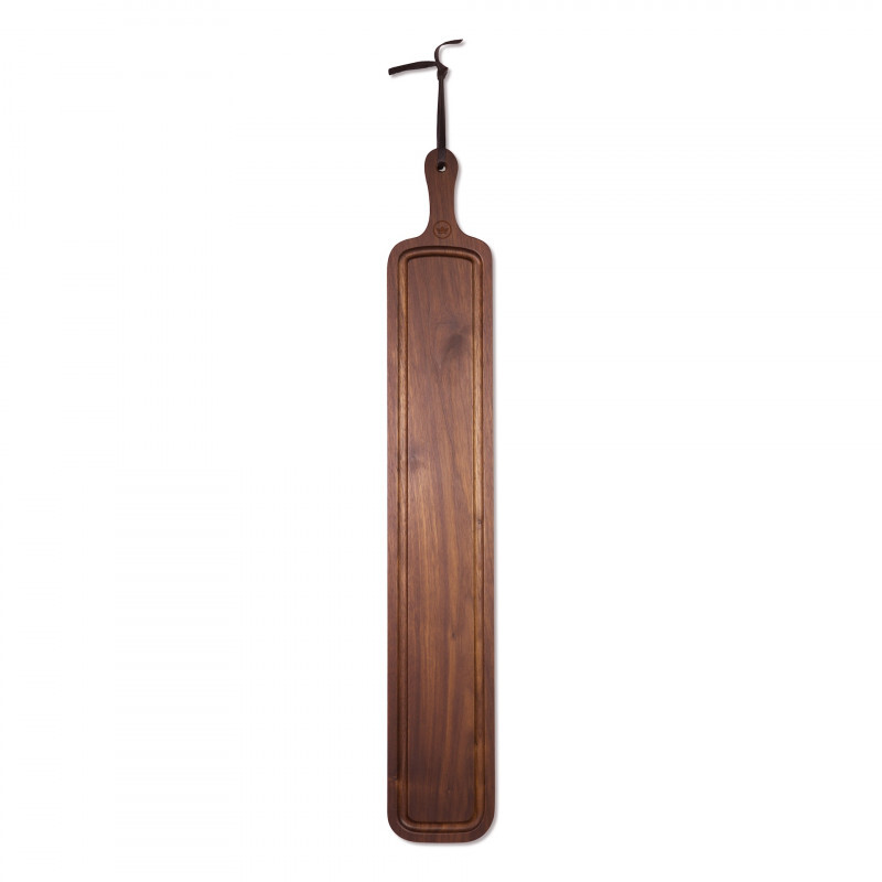 Cette planche en bois de Noyer à été sélectionné pour sa robustesse et sa durabilitée à toute épreuve. Cette planche est doté d'une face lisse pour présenter vos aliments, puis d'une face doté d'une rigole pour la découpe. Vous pourrez y disposer vos apéritifs et tapas pour une soirée entre amis, ou le petit déjeuner pour toute la famille.