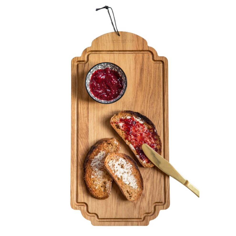 Cette planche en bois de chêne Français à été sélectionné pour sa robustesse et sa durabilitée à toute épreuve. Cette planche est doté d'une face lisse pour présenter vos aliments, puis d'une face doté d'une rigole pour la découpe. Vous pourrez y disposer vos apéritifs et tapas pour une soirée entre amis, ou le petit déjeuner pour toute la famille.