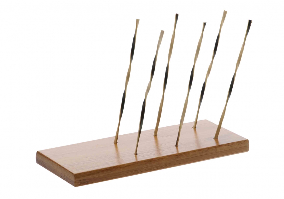 - Présentoir droit en assemblage de morceaux de bambou