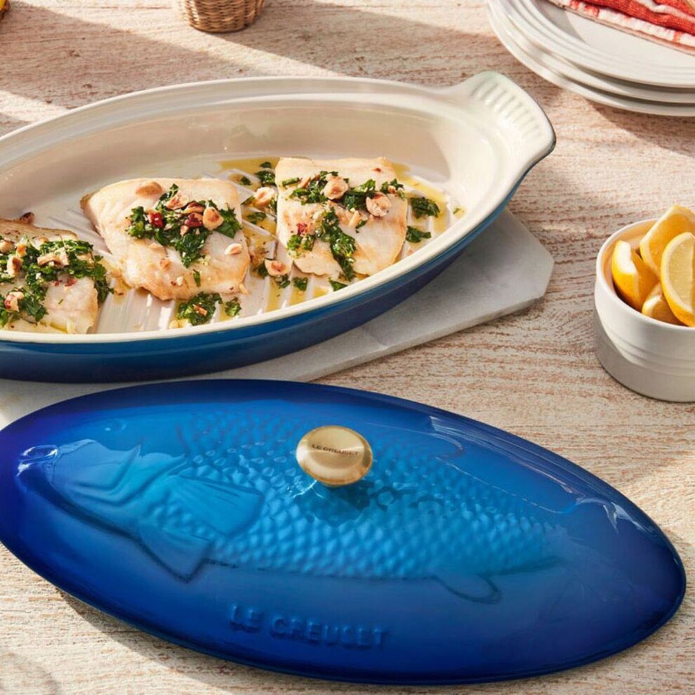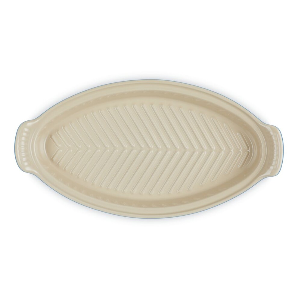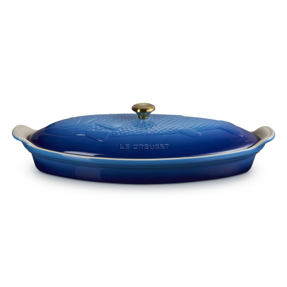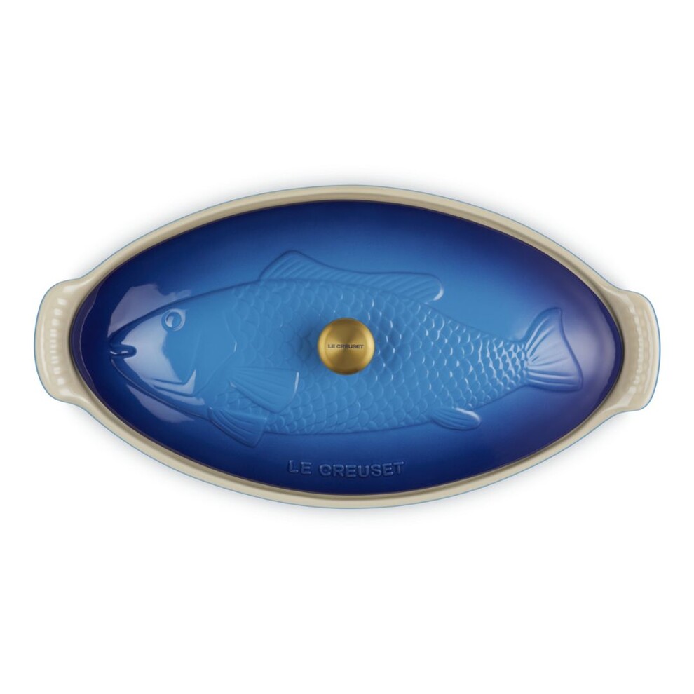 Dotez votre table d'une pièce magistrale. Ce plat à poisson au motif embossé élégant et au bouton doré assure une présentation spectaculaire. Conçu en céramique émaillée de haute qualité, il est parfaitement adapté pour la cuisson au four, à la vapeur ou pour rôtir poissons, légumes et viandes.