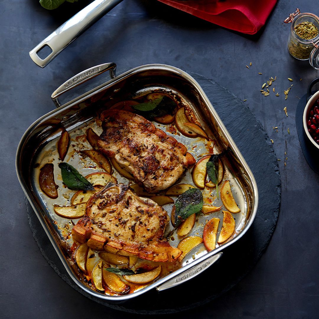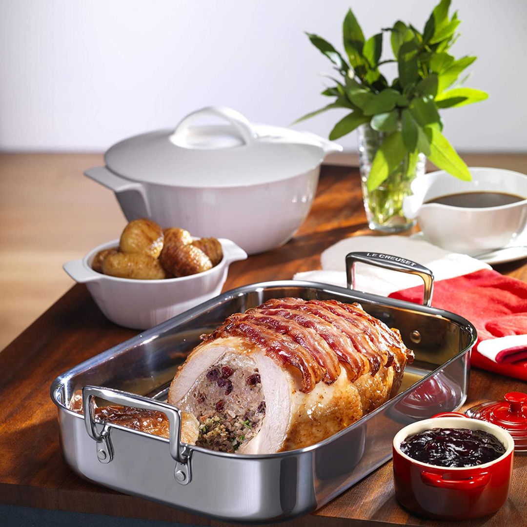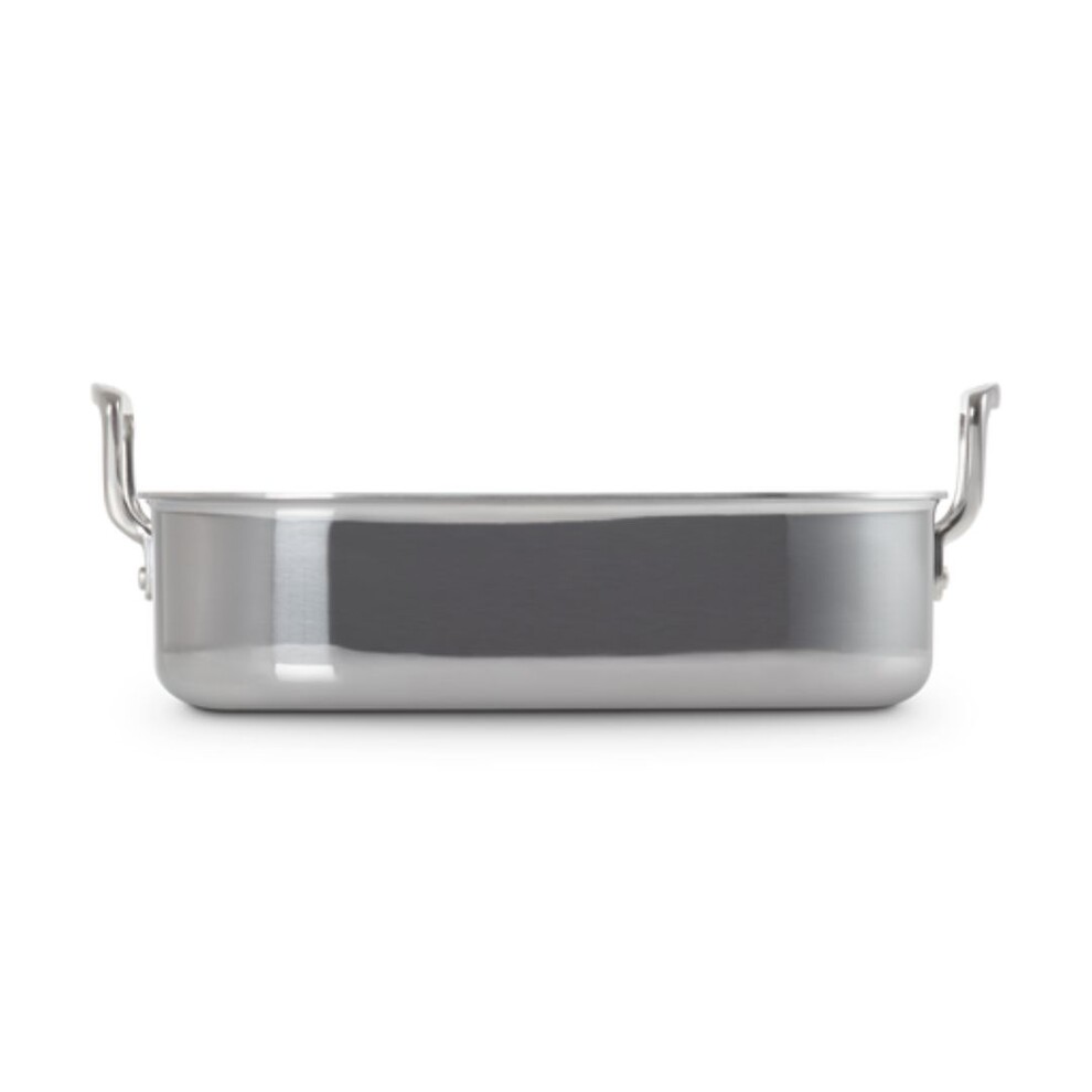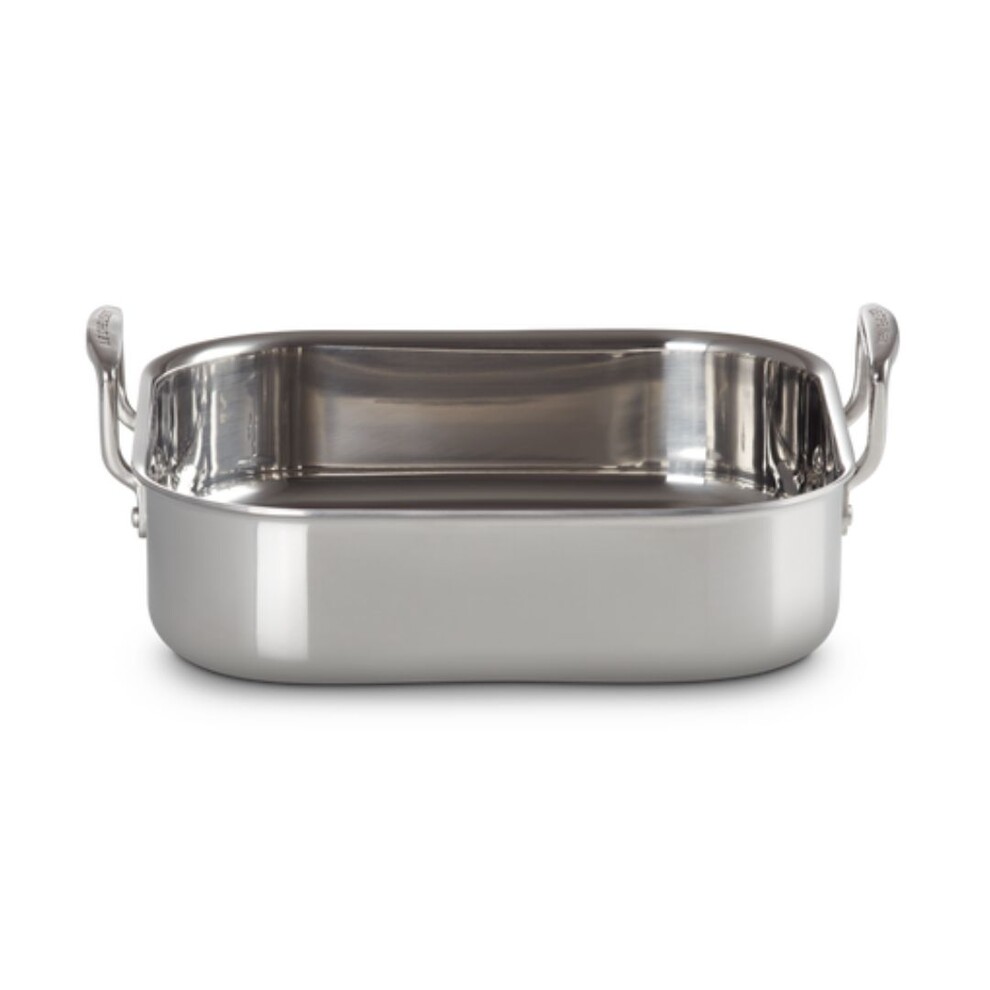 Le plat à rôtir en inox de la marque Le Creuset est revêtue de 3 couches d'inox et d'aluminium, ce qui permet une optimisation de l’homogénéité de la chaleur pour une cuisson parfaite.