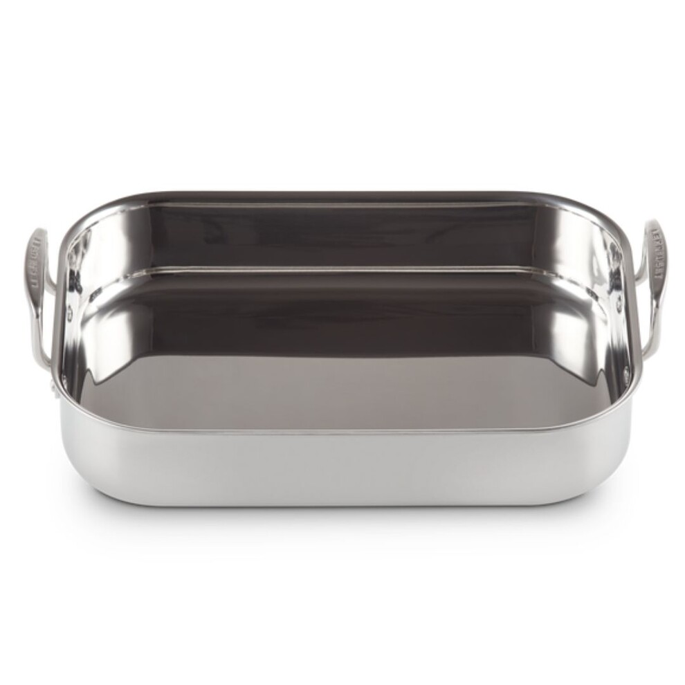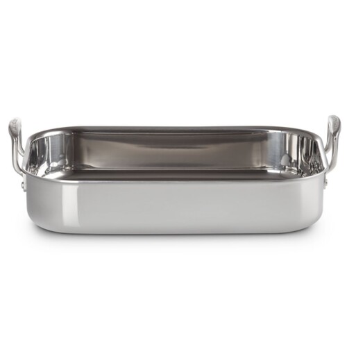Le plat à rôtir en inox de la marque Le Creuset est revêtue de 3 couches d'inox et d'aluminium, ce qui permet une optimisation de l’homogénéité de la chaleur pour une cuisson parfaite.