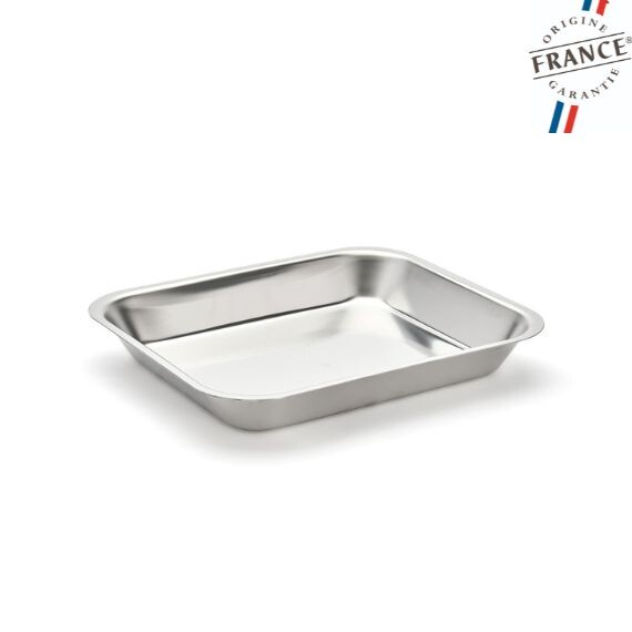 Plat en inox à mariner, à débarrasser ou lèche frites 27 x 22 cm x 4 cm de haut