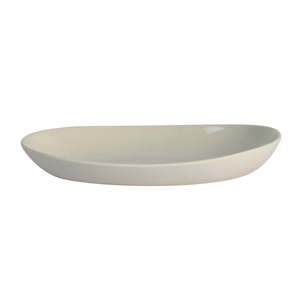 Le plat ovale quartz de la collection Maguelone de Jars est un plat parfait-imparfait de 28 cm de longueur et 21,5 cm de largeur aux lignes irrégulières. La forme organique et délicate de cette pièce sont un délicat rappel à la main du céramiste.