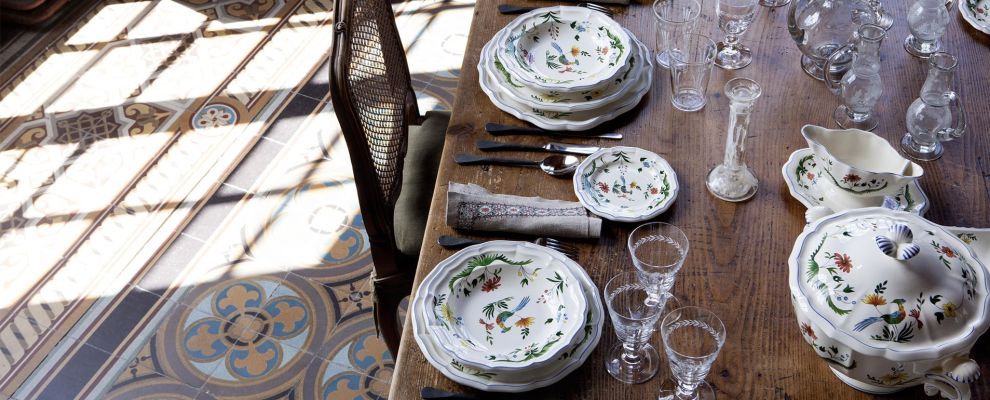 Un décor qui traverse les générations: Oiseaux du ParadisLes motifs intemporels de cette collection date des débuts de la faïencerie et sont totalement peints à la main.